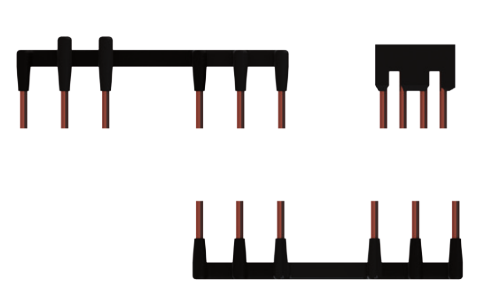 The Weg star-delta bus bars for CWB contactors provide an easy means of building a star-delta motor starter for 3-phase electric motors. These re specialized starters used to reduce the start-up in-rush currents on electric motors. A star-delta starter consists of 3 contactors working together to provide the appropriate switching so that the motor starts in a lower-current 'Y' mode, and then switches to 'Delta' mode once full speed is reached.